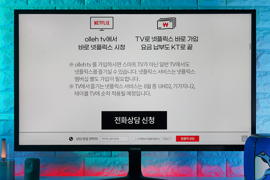 그리고 TV에서 넷플릭스에 바로 가입하고 요금도 KT를 통해서 납부할 수 있다는 점도 편리한 부분입니다. 결제에 어려움을 느끼는 사용자들에게 유용할 것 같습니다.