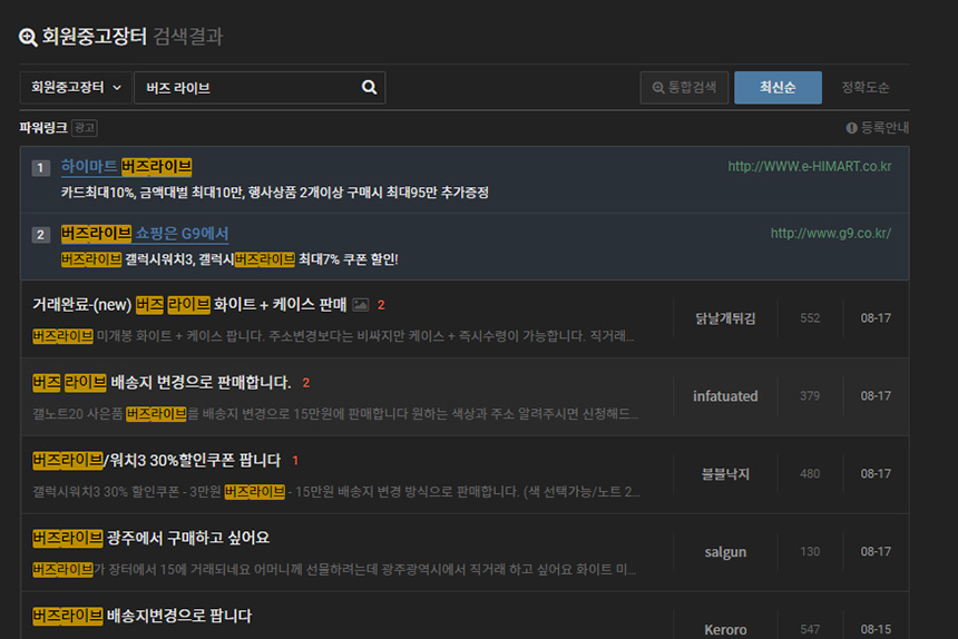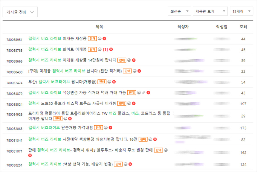 그래서 갤럭시 노트20 시리즈 구매자들은 요금에 대한 부담을 줄이기 위해서 갤럭시 버즈 라이브를 중고로 판매하기 시작을 했습니다. 클리앙 회원중고장터를 확인해 보면 배송지 변경으로 여러 건이 판매되고 있는 것을 확인할 수 있습니다.