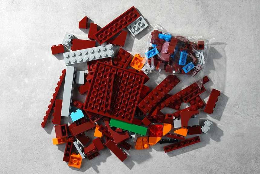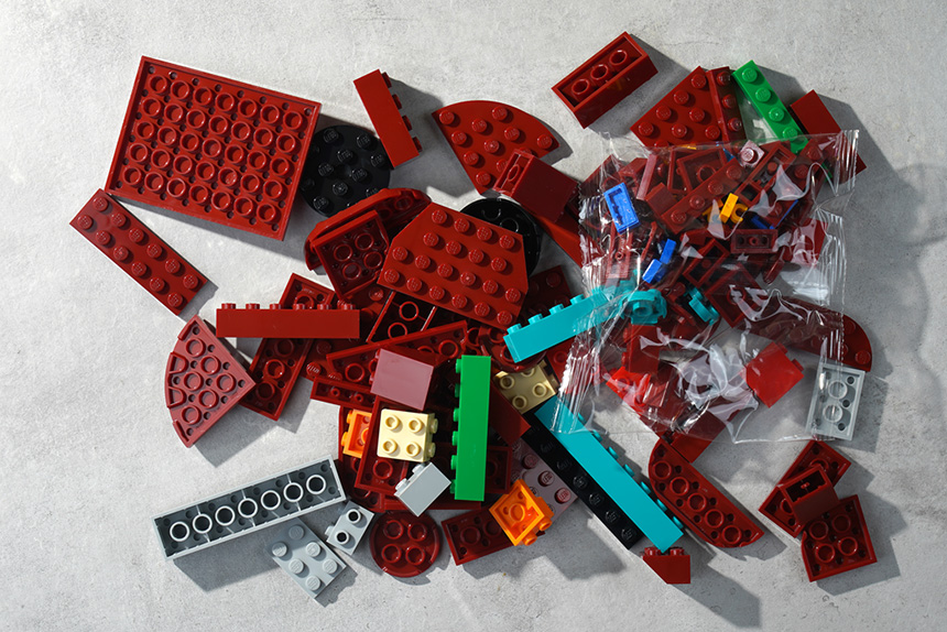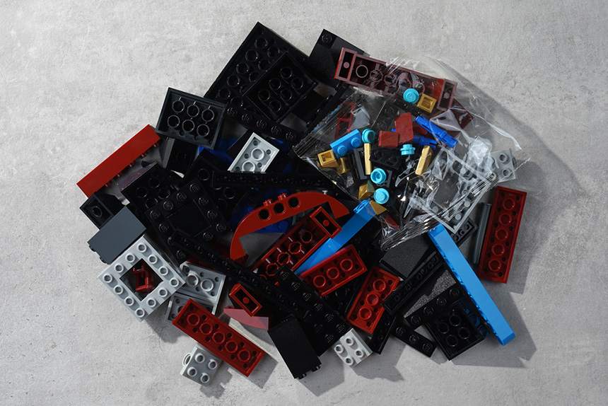 이제 조립을 시작해 보도록 하겠습니다. 우선 첫 번째 봉지는 주로 레드 컬러의 부품들로 구성되어 있고 작은 브릭들은 별도의 봉지에 수납되어 있습니다. 그리고 부품들의 퀄리티는 생각보다는 흠집이 많은 편이어서 약간 실망했습니다.