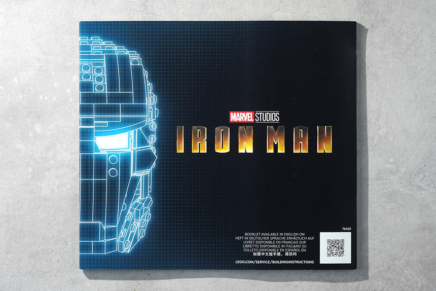 구성품에는 사용자 설명서가 한 장 포함되어 있습니다. 첫 장에는 아이언맨에 대한 내용이 설명되어 있습니다. 그리고 종이 재질이 얇은 편이어서 위쪽에 인쇄된 숫자를 잘 확인한 후에 조립하는 것이 좋을 것 같습니다.