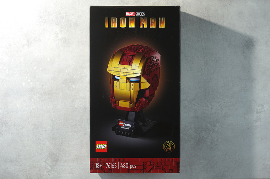 레고 76165 아이언맨 헬멧의 박스는 세로로 긴 형태로 제작되었습니다. 그리고 전면에는 본체의 모습과 함께 레고와 어벤져스의 로고가 같이 프린트되어 있습니다.