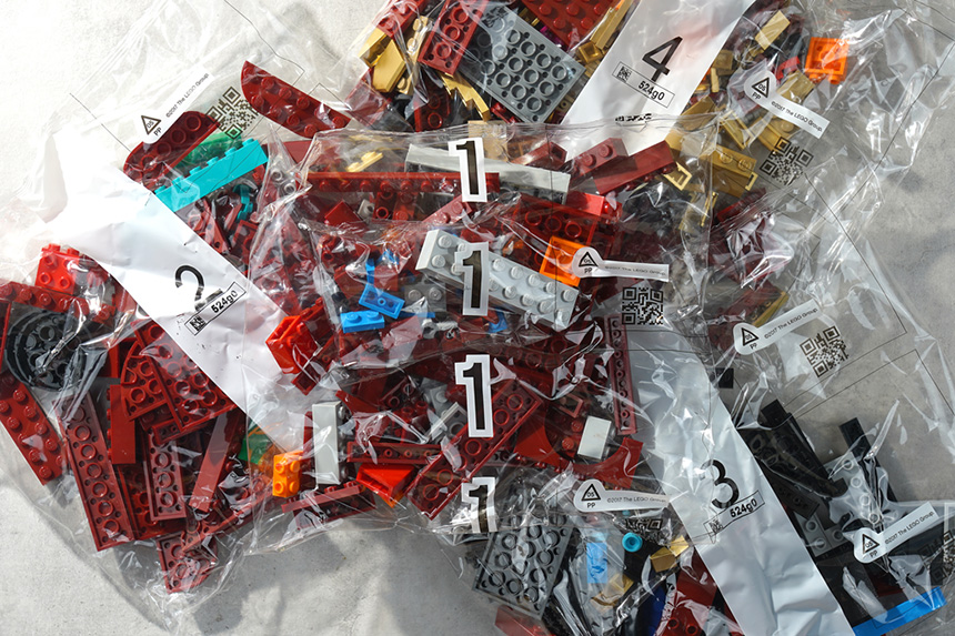 레고 76165 아이언맨 헬멧은 총 4개의 봉지 총 480개의 부품으로 구성되어 있습니다. 브릭의 숫자가 많지 않은 편이어서 최대 1시간 정도면 조립을 완료할 수 있습니다.