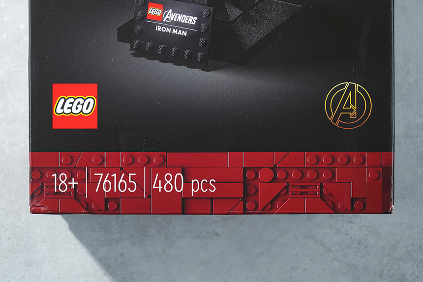 레고 76165 아이언맨 헬멧의 박스는 세로로 긴 형태로 제작되었습니다. 그리고 전면에는 본체의 모습과 함께 레고와 어벤져스의 로고가 같이 프린트되어 있습니다.