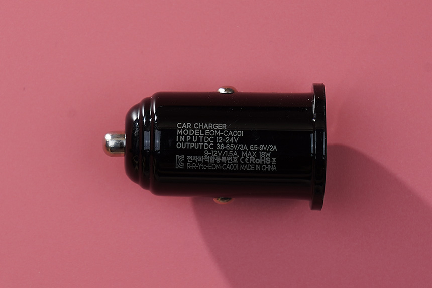 그리고 퀄컴 퀵차지 3.0을 지원하는 고속충전 시거잭 어댑터도 하나 포함되어 있습니다. 참고로 출력은 최대 18W를 지원합니다. 그리고 자동차에 내장된 USB 포트는 고속충전을 지원하지 않는 경우가 많으므로 시가잭 어댑터를 사용하는 것을 권장합니다.