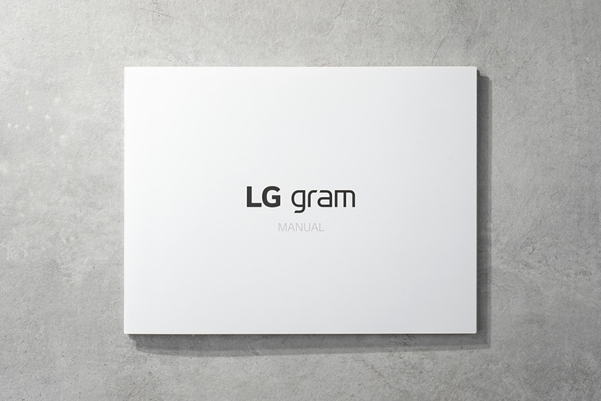 구성품에는 매뉴얼이 한 장 포함되어 있는데 한 번 정도 자세하게 읽어 보는 것이 좋을 것 같습니다. 그리고 LG전자 2019 그램 14ZD990-LX10K는 OS가 설치되지 않은 상태로 판매되고 있고 윈도우10은 직접 설치해야 합니다.