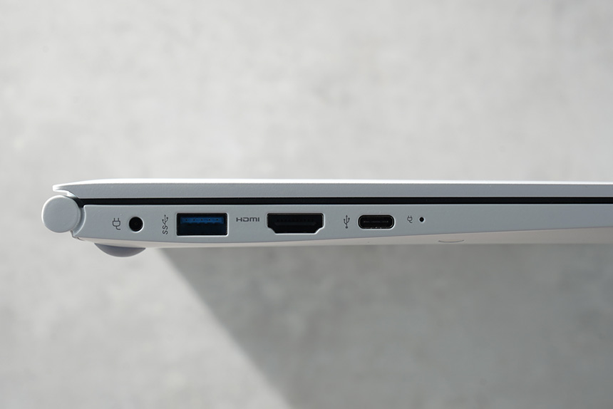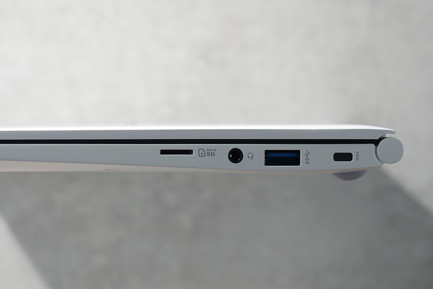 반대쪽 옆면에는 마이크로SD 카드 슬롯과 헤드폰 그리고 USB 3.1 포트와 켄싱턴락 홈이 준비되어 있습니다. 입출력 단자들의 확장성은 무난한 편이라고 할 수 있습니다.