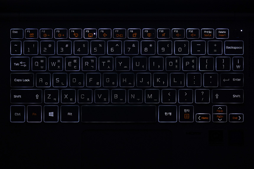 그리고 키보드에는 밝기를 조절할 수 있는 화이트 컬러의 백라이트가 탑재되었습니다. 그래서 어두운 야간에도 간단하게 문서작업을 할 수 있습니다. 대학생이나 직장인들에게 유용한 부분입니다.