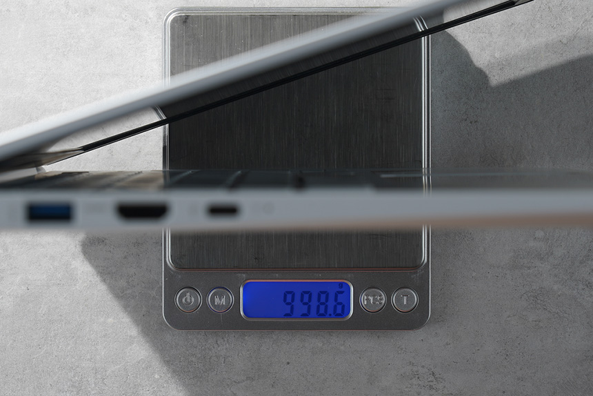 LG전자 2019 그램 14ZD990-LX10K의 가장 큰 장점은 무게라고 할 수 있습니다. 실제로 측정 결과 998g이었는데 1kg이 넘지 않기 때문에 가볍게 휴대할 수 있습니다.