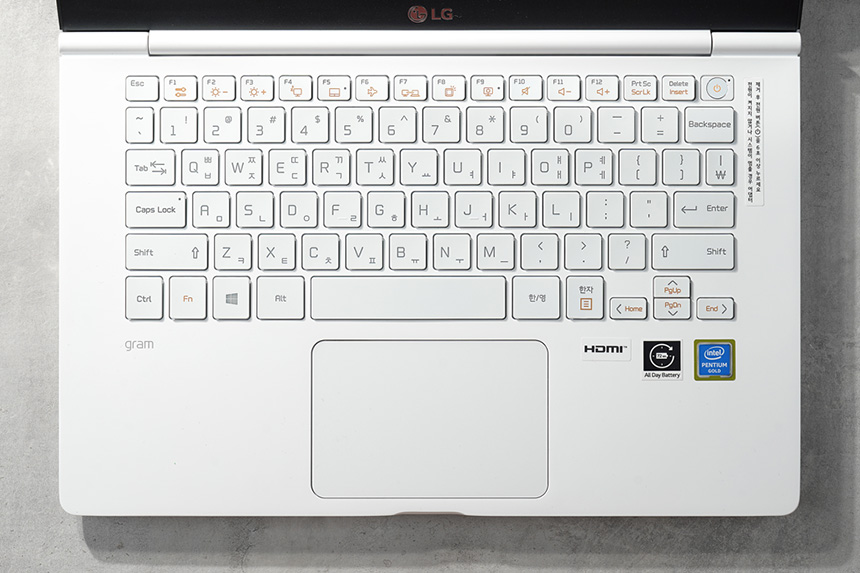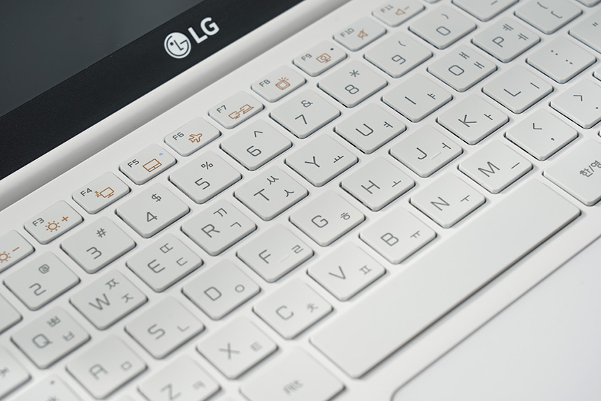 LG전자 2019 그램 14ZD990-LX10K의 키캡 높이는 적절한 편이었고 키감도 상당히 준수하다고 생각되었습니다. 저도 많은 종류의 그램 시리즈를 사용해 보았는데 키감을 비롯한 다양한 감성적인 부분들이 점차 개선되고 있습니다.