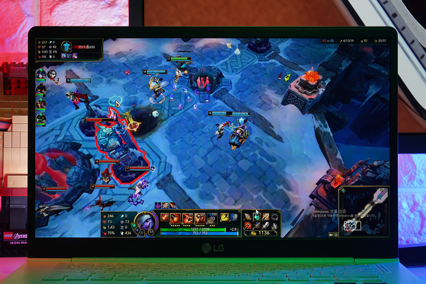 게임 성능을 간단하게 살펴보면 리그 오브 레전드(롤)은 가장 낮은 옵션에서 평균 43프레임이 측정되었습니다. 어느 정도는 플레이할 수 있지만 쾌적하다고 이야기는 어렵습니다.