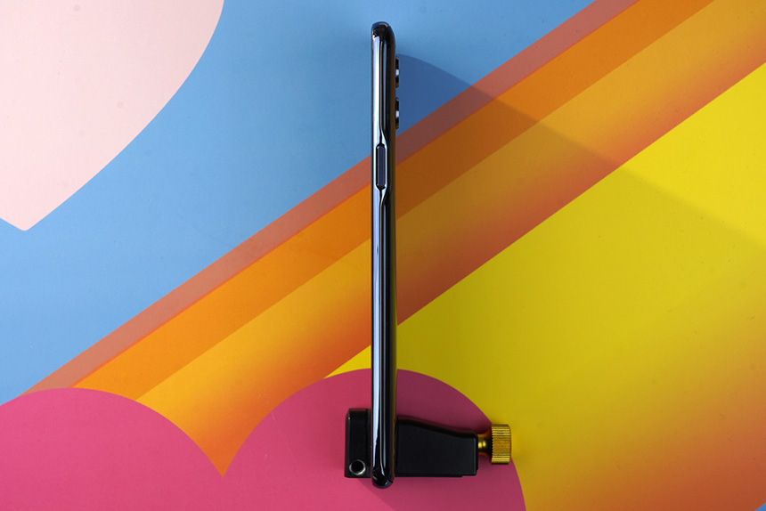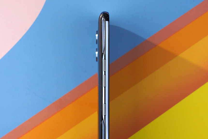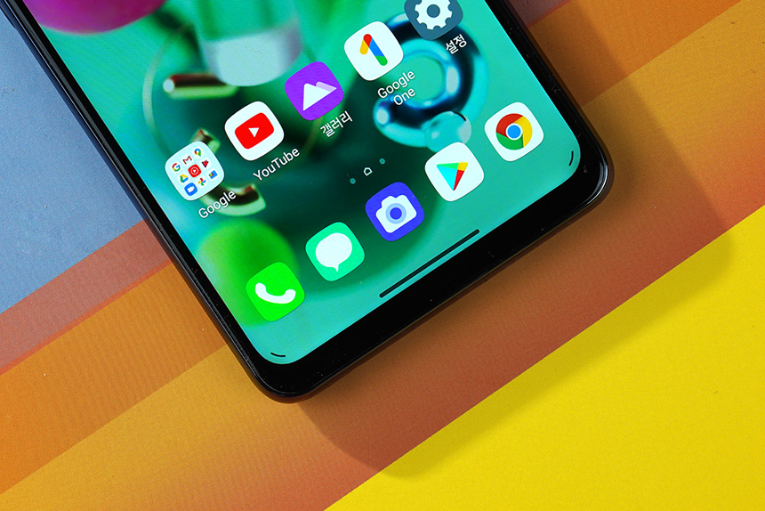 베젤은 전체적으로 슬림하고 아래쪽은 다른 부분과 비교하면 약간 넓은 편입니다. 최근에 출시되고 있는 스마트폰들은 몰입감을 높이고 전체 크기를 작게 만들기 위해서 베젤에 신경을 많이 쓰고 있습니다.