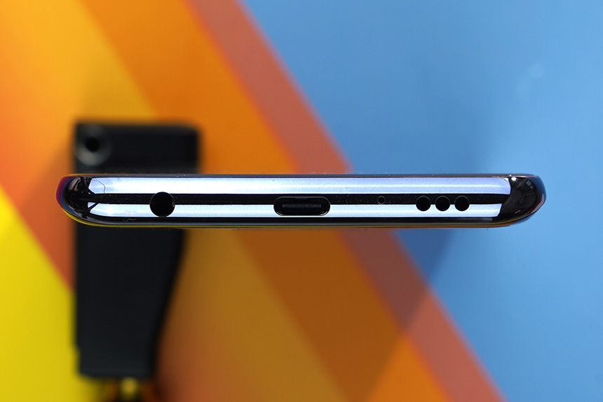 아래쪽을 살펴보면 유선 이어폰 단자와 USB 타입-C 포트 그리고 마이크와 스피커가 배치되어 있습니다. 참고로 LG Q92에는 스테레오 스피커가 탑재되어서 넷플릭스나 유튜브를 감상할 때 유용합니다.