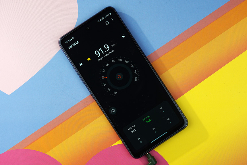 그리고 이어폰을 안테나로 사용하는 FM 라디오 기능도 지원합니다. 채널을 자동으로 검색하고 즐겨찾기도 등록할 수 있는데 데이터를 소모하지 않고 뉴스나 음악을 접할 수 있습니다.