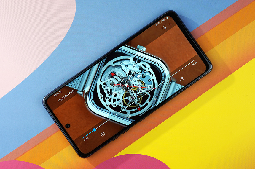 펀치 홀의 크기는 크게 부담스럽지 않은 편이고 노치 디자인과 비교해서 화면을 상대적으로 적게 가리는 편입니다. 그리고 전면에는 3,200만 화소의 셀피 카메라가 탑재되었습니다.