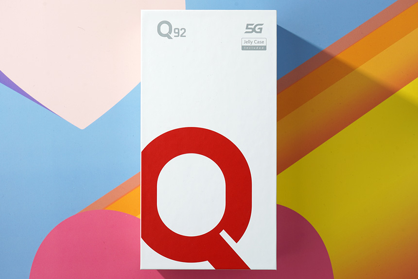박스의 상단에는 Q92라는 모델명과 함께 5G 네트워크를 지원한다는 문구가 표시되어 있습니다. 그리고 젤리 케이스가 기본으로 제공되기 때문에 액세서리 추가 구매 비용을 줄일 수 있습니다.