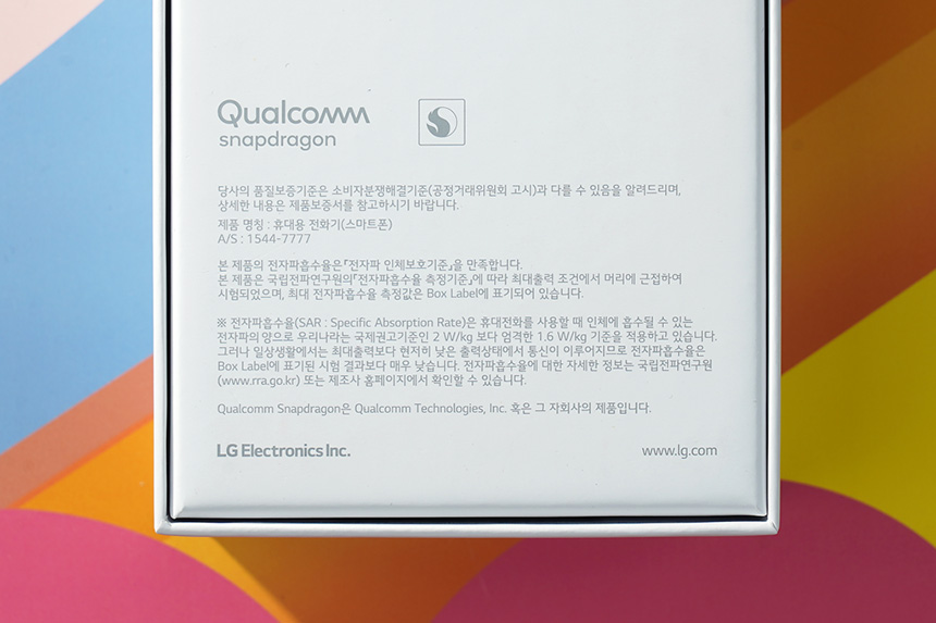 박스를 개봉하고 내부를 확인해보면 LG Q92가 수납되어 있습니다. 그리고 보호 필름에는 다양한 정보들이 표시되어 있는데 4,800화소의 후면과 3,200만 화소의 전면 카메라를 탑재하고 있고 특히 중급형 제품이지만 스테레오 스피커를 내장했다는 점이 차별화된 부분입니다.