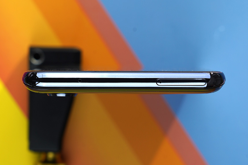 베젤은 전체적으로 슬림하고 아래쪽은 다른 부분과 비교하면 약간 넓은 편입니다. 최근에 출시되고 있는 스마트폰들은 몰입감을 높이고 전체 크기를 작게 만들기 위해서 베젤에 신경을 많이 쓰고 있습니다.
