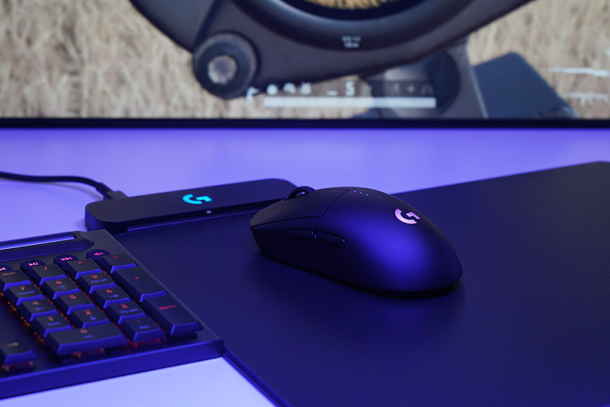 로지텍 파워플레이 마우스패드에는 LIGHTSPEED 수신기가 내장되어 있습니다. 그래서 별도의 무선 수신기 없이도 로지텍 GPRO 무선 게이밍 마우스를 무선으로 사용할 수 있습니다. 참고로 초기 설정을 위해서는 파워플레이가 연결된 컴퓨터에 유선으로 한 번 마우스를 연결해 주어야 합니다.