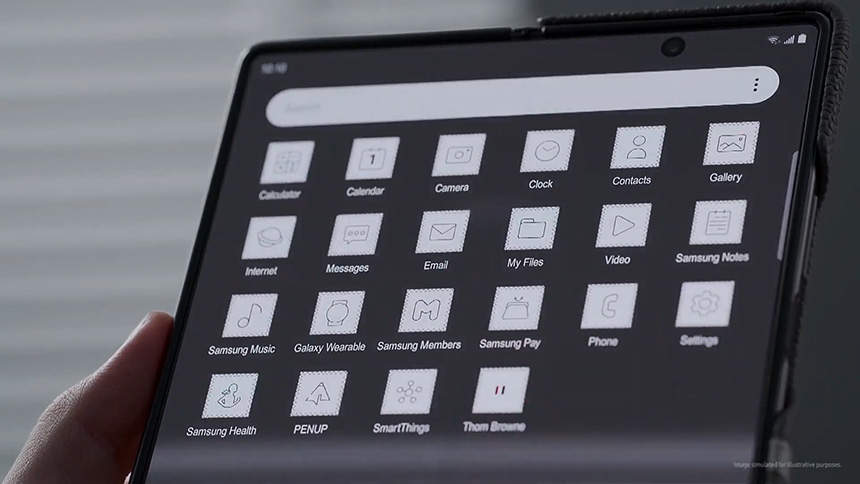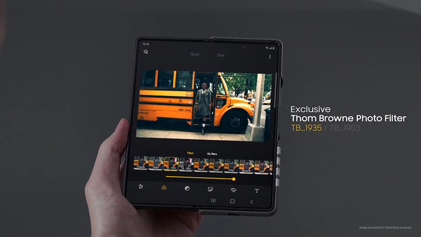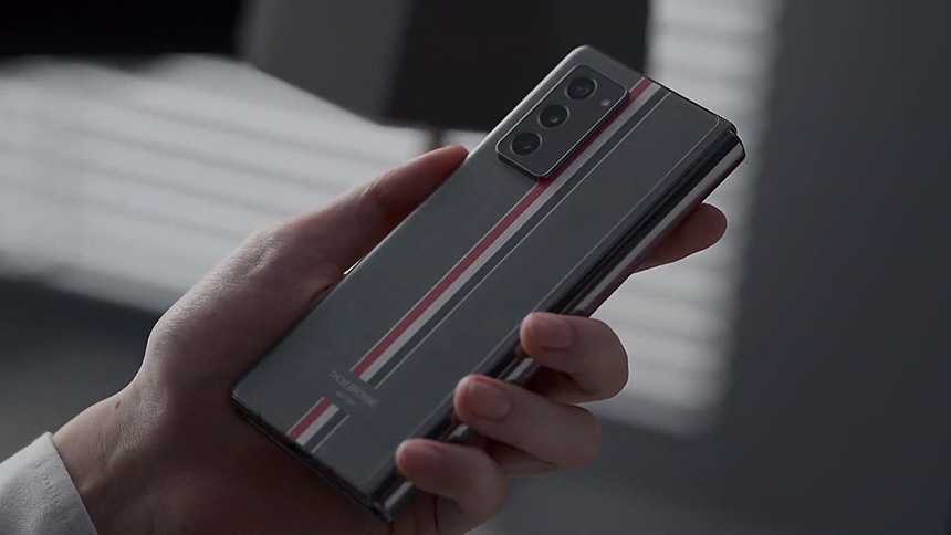 갤럭시 Z 폴드2 톰브라운 에디션은 폴드2와 버즈라이브 그리고 갤럭시 워치3로 구성된 패키지입니다. 특히 톰브라운의 시그니처 회색 색상에 특유의 패턴 로고가 각인되어 있다는 점이 차별점입니다.