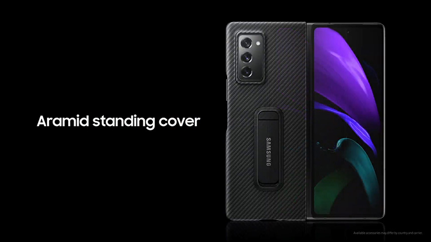 갤럭시 Z 폴드2는 현재 레더 커버와 아마미드 스탠딩 커버만 공개되었습니다. 전체를 보호하는 것이 아니라 뒤쪽만 감싸는 형태로 제작되었습니다. 그리고 언박싱 영상을 보면 케이스가 기본으로 제공되지는 않는 것 같습니다.