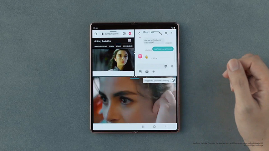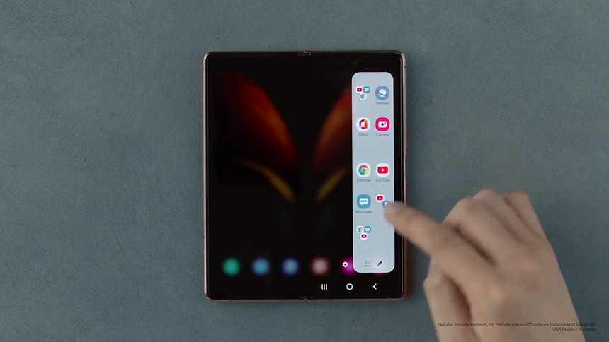 갤럭시 Z 폴드2의 메인 디스플레이를 제대로 활용하기 위해서 삼성전자는 다양한 기능을 추가했습니다. 특히 멀티 태스킹 기능이 강화되었는데 최대 3개의 앱을 동시에 실행할 수 있습니다.