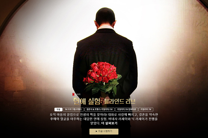 “연애 실험: 블라인드 러브”는 대화로 사랑에 빠지고 결혼을 약속한 후에나 얼굴을 마주하는 연애 실험입니다. 요즘과 물질 시대에 상당한 의미가 있는 리얼리티 프로그램이라고 생각되었습니다.