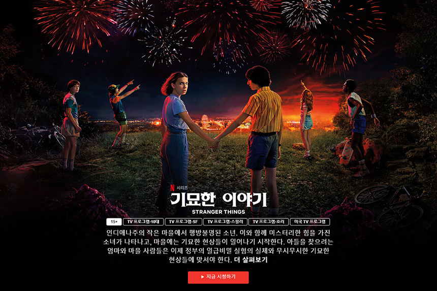 “기묘한 이야기”는 SF호러 드라마입니다. 국내에서도 많은 사랑을 받고 있는 작품이고 현재 시즌3까지 공개되었습니다. 그리고 무료로는 시즌 1의 제1장 윌 바이어스의 실종을 감상할 수 있습니다.
