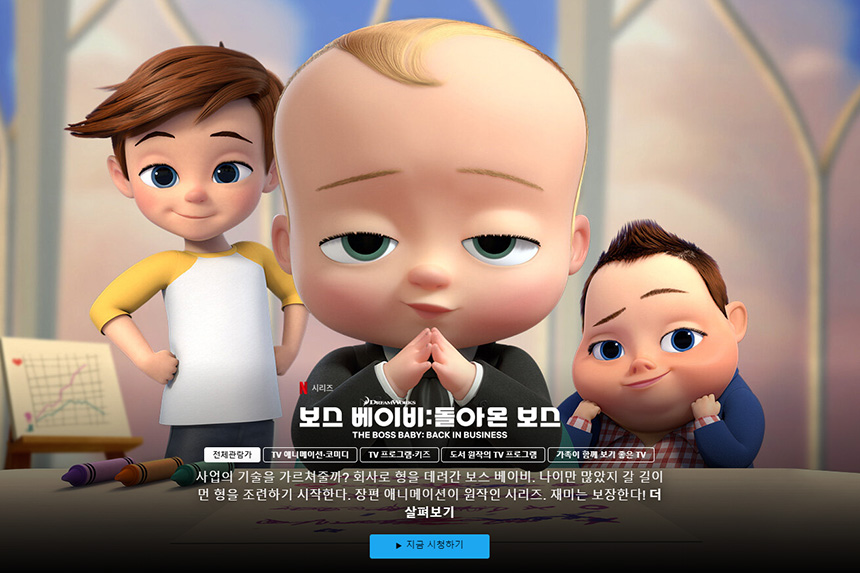 “보스 베이비: 돌아온 보스”는 넷플릿의 독점 애니메이션입니다. 영화 버전과는 다르게 성우가 교체되고 그래픽이 약간 달라져서 이질감이 느껴질 수도 있지만 재미있는 편입니다.