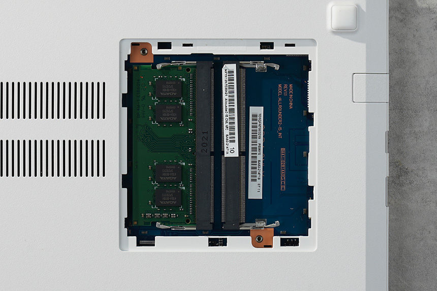 그리고 메모리도 업그레이드 도어를 이용해서 간단하게 추가할 수 있습니다. 특히 기본적으로 장착된 8GB 용량의 DDR4 메모리도 온보드되어 있지 않아서 두 개 모두를 자신이 원하는 제품으로 교체할 수 있습니다.