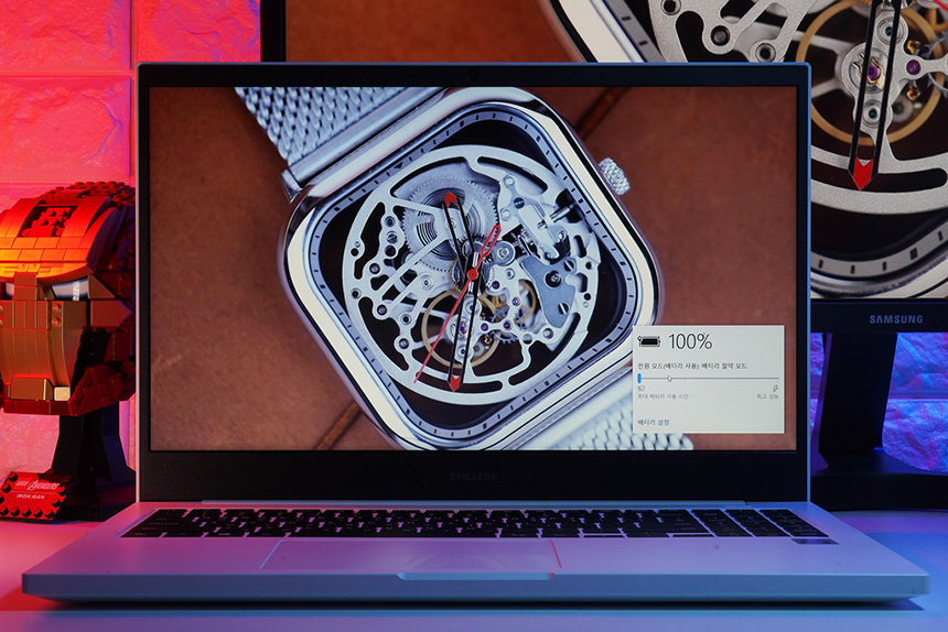 삼성전자 NT350XCR-AD5WA 노트북에는 43Wh 용량의 배터리가 탑재되었고 배터리 절약 모드에서 동영상을 약 7시간 정도 재생할 수 있었습니다. 준수한 수준의 배터리 시간이라고 할 수 있습니다.