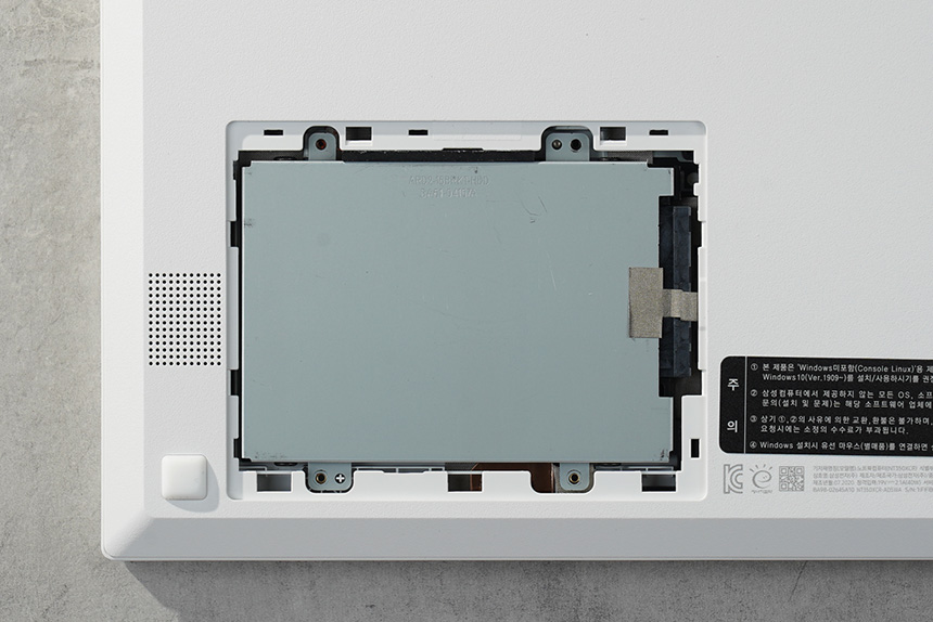 삼성전자 NT350XCR-AD5WA 노트북의 중요한 장점은 2.5인치 폼팩터의 HDD와 SSD를 편리하게 장착할 수 있는 기능을 갖추고 있다는 점입니다. 그래서 용량이 부족하다고 생각되는 분들은 간편하게 업그레이드를 할 수 있습니다.
