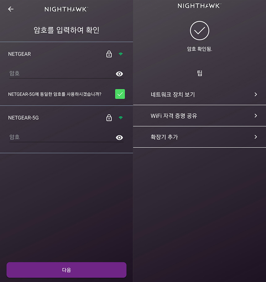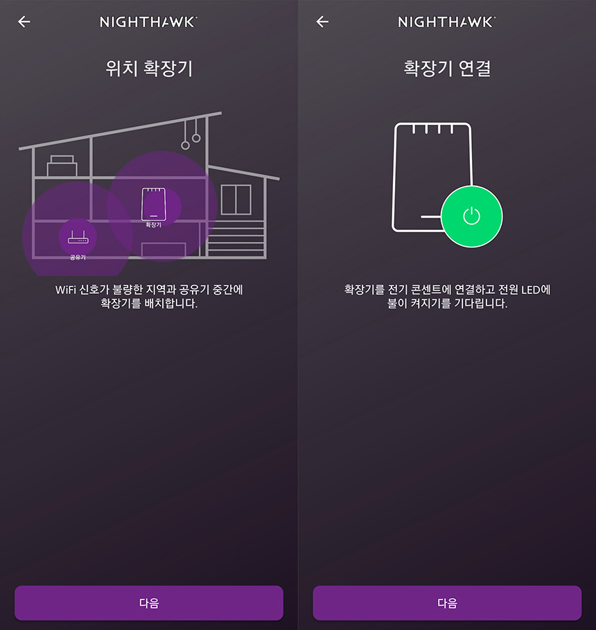 초기 설정은 나이트호크 앱을 통해서 진행할 수 있습니다. 과정 자체는 상당히 간단한 편이어서 처음 넷기어 EAX20 와이파이 증폭기와 같은 제품을 처음 사용하는 분들도 어렵지 않게 설치와 세팅을 할 수 있습니다.