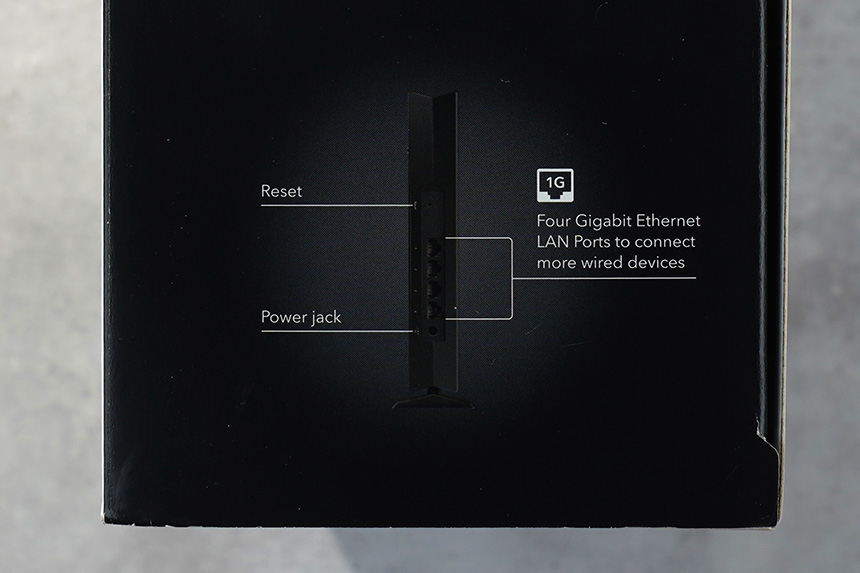 옆면은 세련된 무광의 블랙 컬러로 제작되었고 NETGEAR의 로고가 부착되어 있습니다. 디자인적인 부분에서 크게 튀지 않기 때문에 가정의 인테리어와 잘 매칭이 될 것으로 예상합니다.