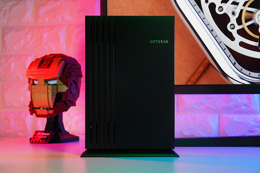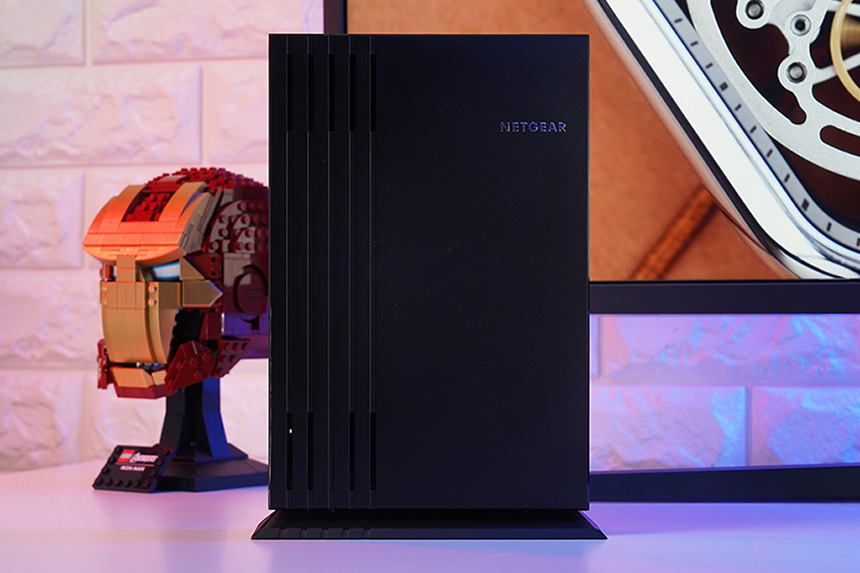 옆면은 세련된 무광의 블랙 컬러로 제작되었고 NETGEAR의 로고가 부착되어 있습니다. 디자인적인 부분에서 크게 튀지 않기 때문에 가정의 인테리어와 잘 매칭이 될 것으로 예상합니다.