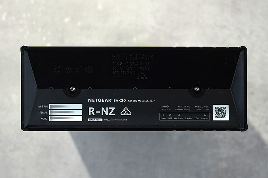 상단을 살펴보면 통풍구 등이 준비된 것을 확인할 수 있습니다. 넷기어 EAX20 와이파이 증폭기와 같은 제품들은 365일 24시간 동작하는 경우가 많아서 발열 대책이 생각보다 중요합니다.
