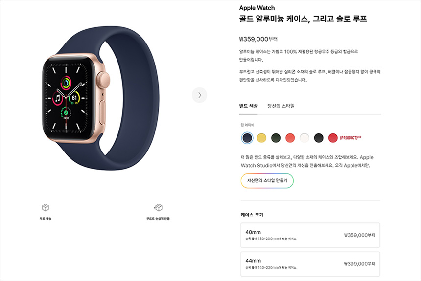 애플워치 SE는 두 가지 사이즈로 출시되었습니다. 우선 40mm는 359,000원부터 시작하고 44mm는 399,000원부터 시작합니다. 다른 시리즈의 제품과 비교하면 약간 저렴한 편입니다.