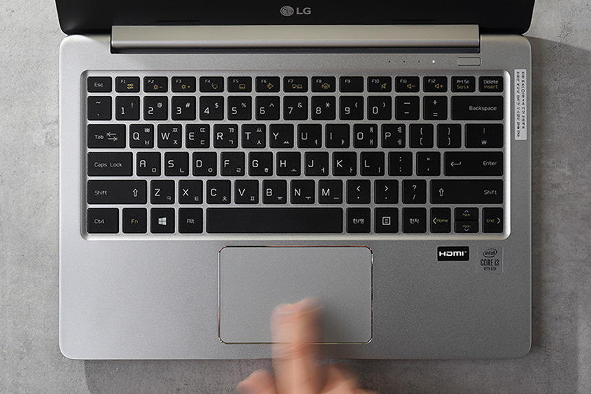 준수한 키감을 제공하는 키보드를 이용해서 문서 작업 용도로도 활용할 수 있습니다. 그렇지만 13인치 노트북의 특성상 숫자키가 없다는 점은 일부 사용자들에게 조금 불편할 수 있습니다.