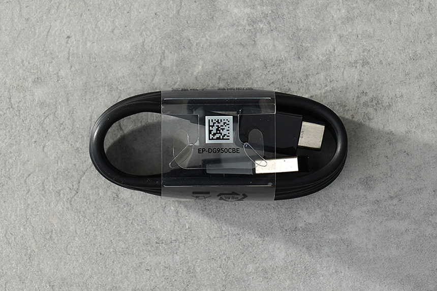 고속 충전을 지원하는 1.2m 길이의 USB C타입 케이블도 하나 동봉되어 있습니다. 삼성전자의 제품들에서 많이 사용되는 케이블인데 2개에 7~8천원 정도에 따로 구매할 수 있습니다.