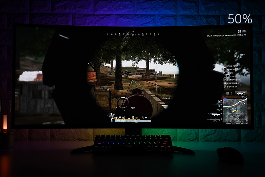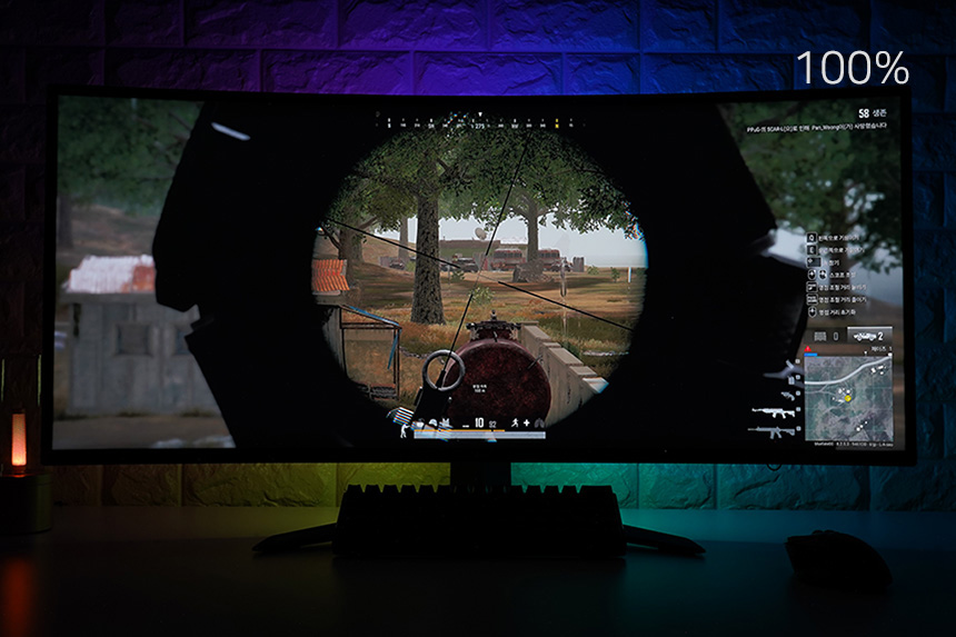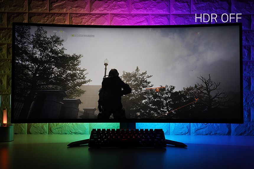 HDR(High Dynamic Range)은 밝은 부분은 더 밝게 어두운 부분은 더 어둡게 표현해서 사람이 실제 눈으로 보는 것과 가깝게 화면을 표현하는 기술입니다. 그리고 LG 울트라기어 38GN950은 VESA DisplayHDR 600 기술이 탑재되었고 실제 게임에서도 HDR 효과를 체감할 수 있습니다. 참고로 밝기는 450nits입니다.