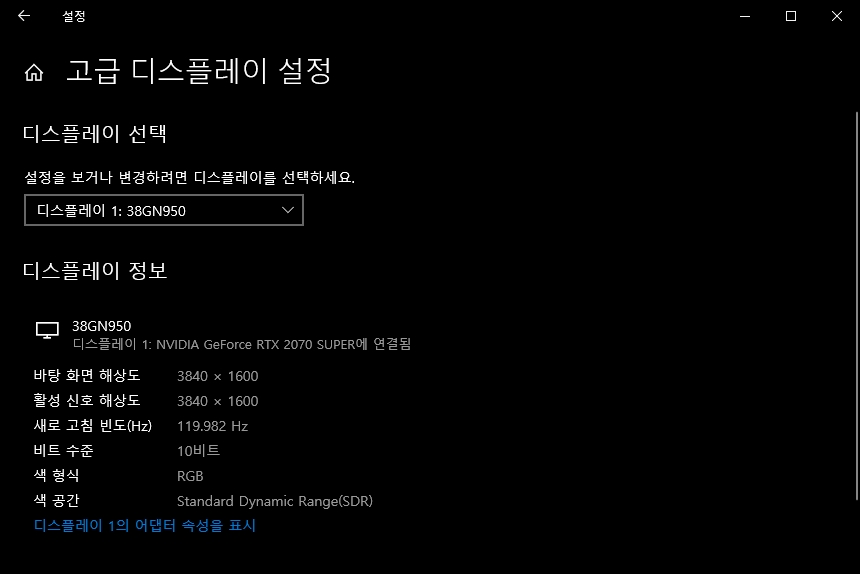 LG 울트라기어 38GN950의 재미있는 부분은 주사율을 120Hz로 낮췄을 때 10비트를 지원한다는 점입니다. 일반적으로 사용되는 8비트와 비교해서 컬러를 더욱 정교하게 표현할 수 있다는 장점이 있습니다. 그래픽 작업을 하려는 분들에게 유용한 부분입니다.