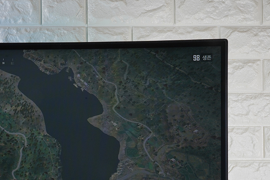베젤은 게이밍 모니터임을 고려하면 슬림한 편이라고 할 수 있습니다. 상대적으로 베젤이 얇은 모니터들은 눈으로 보기에 거슬리는 부분에 적어서 콘텐츠 자체에 더욱 몰입할 수 있다는 장점이 있습니다.