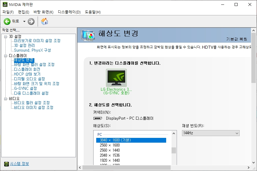 해상도는 WQHD+ (3840 x 1600)을 지원하고 G-SYNC 호환 관련 정보를 확인할 수 있습니다. 해상도가 높은 편이어서 게임 플레이는 물론이고 각종 작업을 할 때에도 유용하게 활용할 수 있습니다.