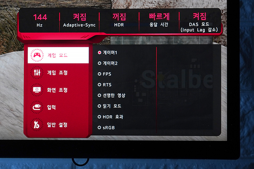 설정을 확인해 보면 다양한 게임 모드들이 준비되어 있는데요. 자신이 플레이하는 게임의 종류에 따라서 LG 울트라기어 38GN950의 밝기나 색감 등을 빠르게 변경할 수 있습니다.