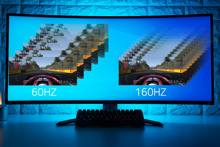그럼 주사율이 무엇인지 궁금하실 수 있는데 1초에 몇 번 화면을 갱신할 수 있느냐를 의미합니다. 그래서 1초에 144번 화면을 표시하는 LG 울트라기어 38GN950은 60번만 갱신하는 일반적인 모니터와 비교해서 게임 화면이 끊어지지 않고 부드럽게 움직이는 듯한 느낌을 제공해 줍니다.
