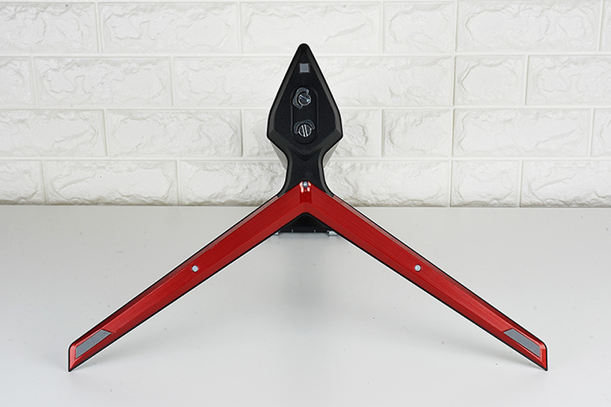 스탠드는 금속으로 제작되어서 안정적으로 LG 울트라기어 38GN950를 거치해주는 역할을 합니다. 그리고 별도의 도구 없이도 설치할 수 있도록 제작되었고 디자인적인 부분에서도 만족감이 높은 편입니다.