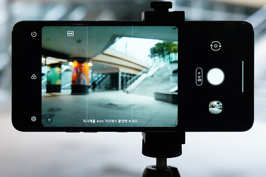 200만 화소의 접사 카메라를 이용하면 4cm 거리에서 사물의 디테일한 모습을 촬영할 수 있습니다. 그런데 어떤 상황에서는 4,800만 화소의 메인 카메라로 촬영을 하고 잘라내는 것이 오히려 화질이 좋을 수 있습니다.