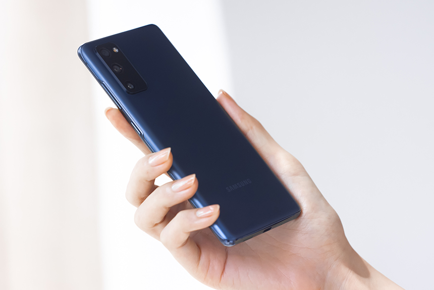 갤럭시 S20 FE의 뒷면도 갤럭시 노트20 미스틱 브론즈 색상에 적용되었던 헤이즈 공법이 적용되어서 매트한 느낌을 주는 편입니다. 지문이 잘 묻지 않는다는 장점이 있지만 손에서 잘 미끄러지는 단점도 가지고 있습니다.