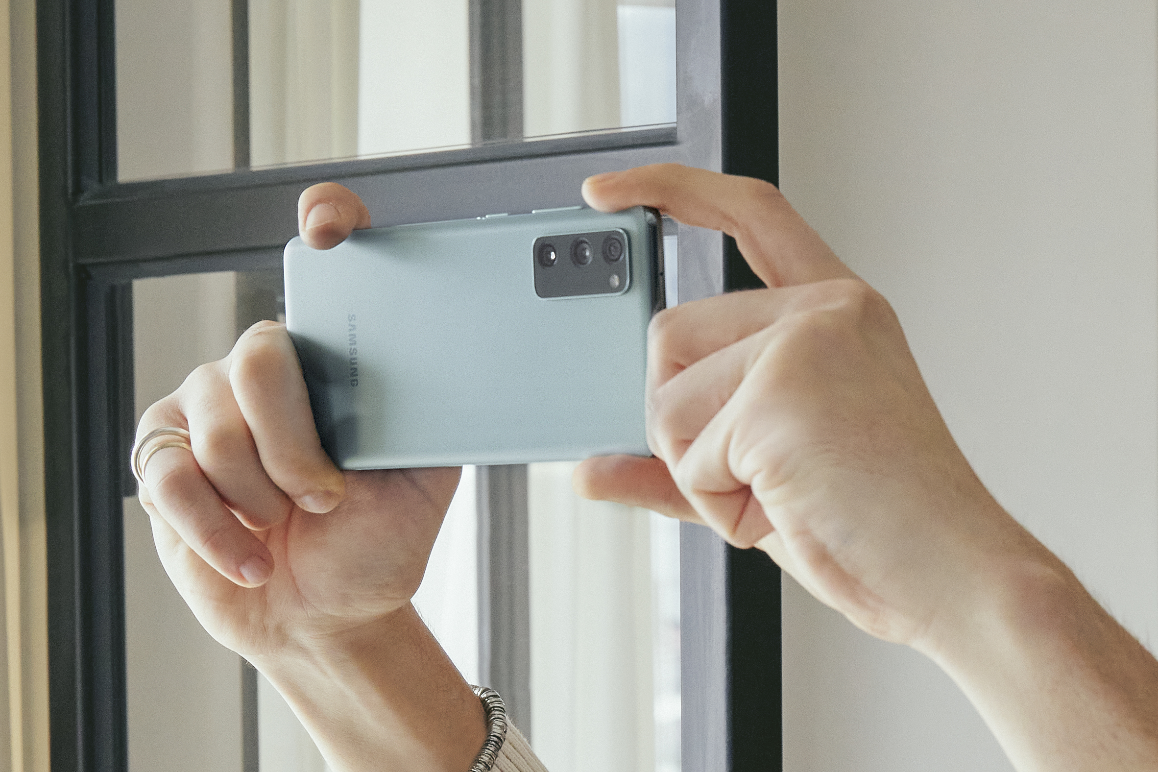 갤럭시 S20 FE의 뒷면도 갤럭시 노트20 미스틱 브론즈 색상에 적용되었던 헤이즈 공법이 적용되어서 매트한 느낌을 주는 편입니다. 지문이 잘 묻지 않는다는 장점이 있지만 손에서 잘 미끄러지는 단점도 가지고 있습니다.