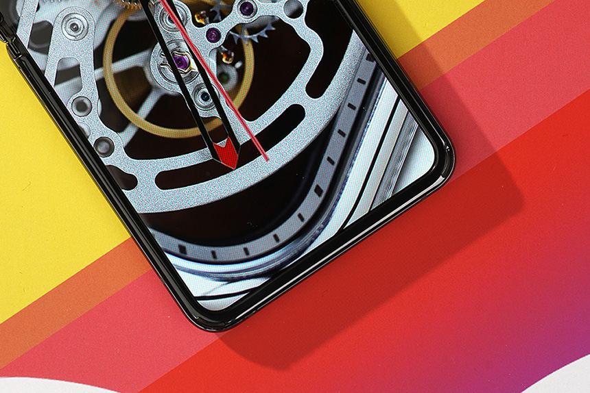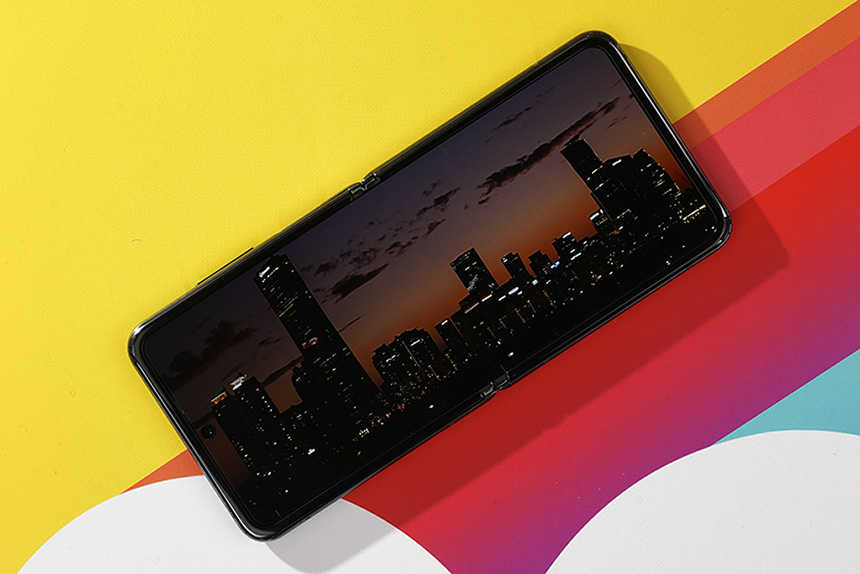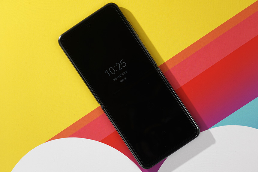 갤럭시 Z 플립 5G에는 6.7인치 21.9:9 비율의 인피니티-O 플렉스 디스플레이를 탑재했습니다. 일반적인 스마트폰보다도 세로로 더 길어진 느낌입니다. 그리고 접었을 때 필연적으로 생기는 주름은 의외로 크게 신경 쓰이지 않았습니다.