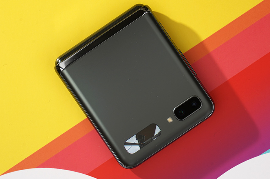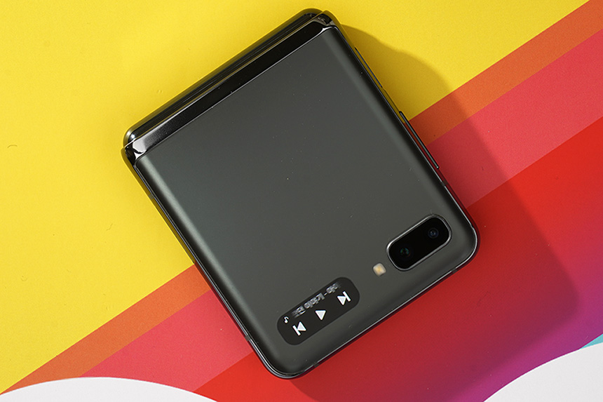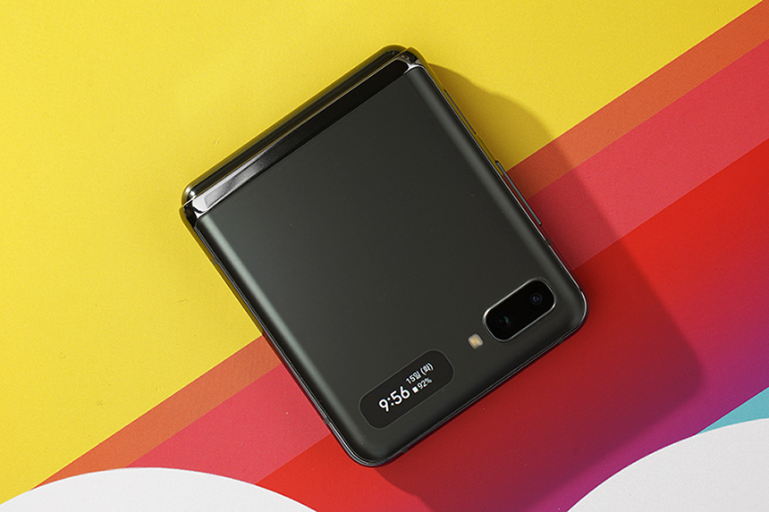 갤럭시 Z 플립 5G의 외부에는 스마트폰을 열지 않고도 시간이나 알림을 확인할 수 있는 커버 스크린이 배치되어 있습니다. 그리고 옆쪽에 1,200만 화소의 기본과 초광각 카메라도 탑재되었습니다. 잠시 후에 확인해볼 플렉스 모드와 결합해서 다양한 방식으로 활용할 수 있습니다.